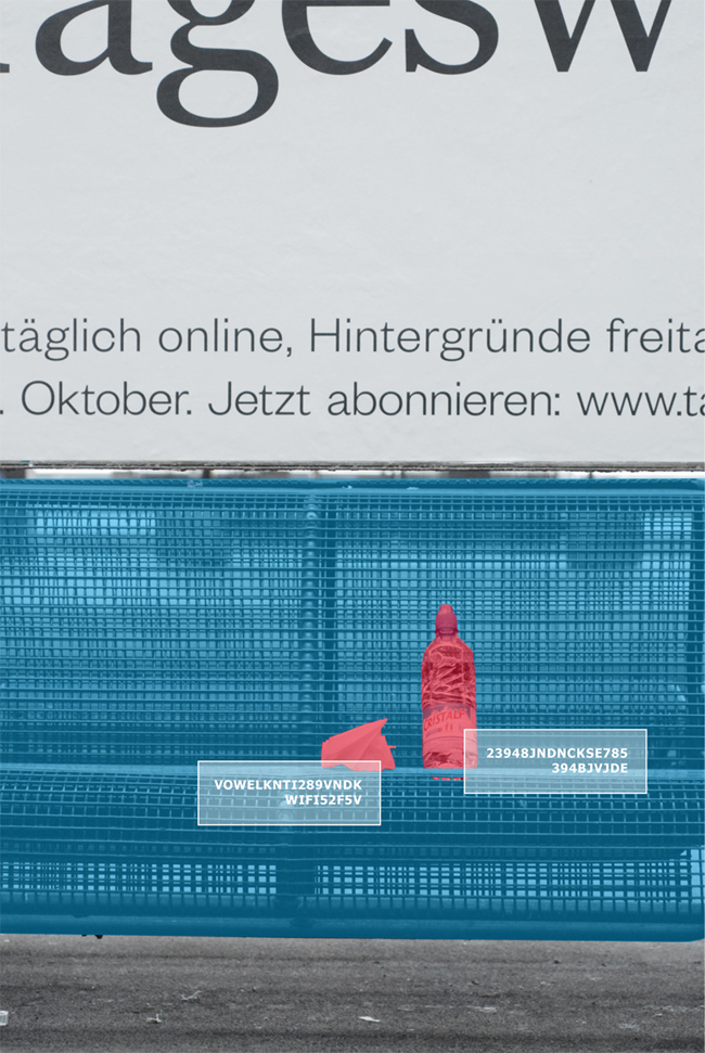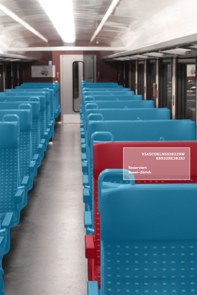 An easy colour system informs the individual about the belongings of goods. As soon as a public item is used by an individual, the colour turns from blue to red and the user number appears. Public goods are coloured in blue if available, red if occupied. Private belongings are coloured in purple for the owner but red for everybody else. Information appears if interesting for the individual.