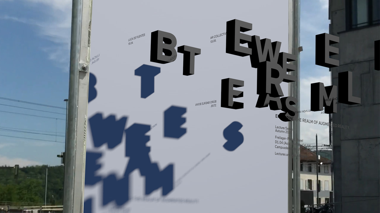 I created a poster for a fictional lecture series, which will be held in the HGK Basel in the autumn semester 2020. The lecture’s topic focuses on “exploring the realm of augmented reality” and is entitled “between realms”. Following fictive lecturers will be holding lecture-talks: