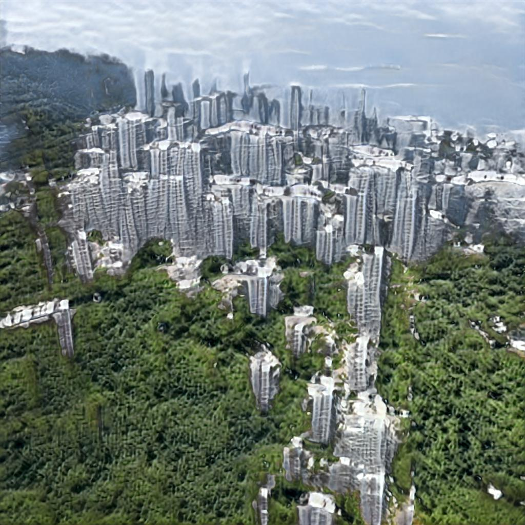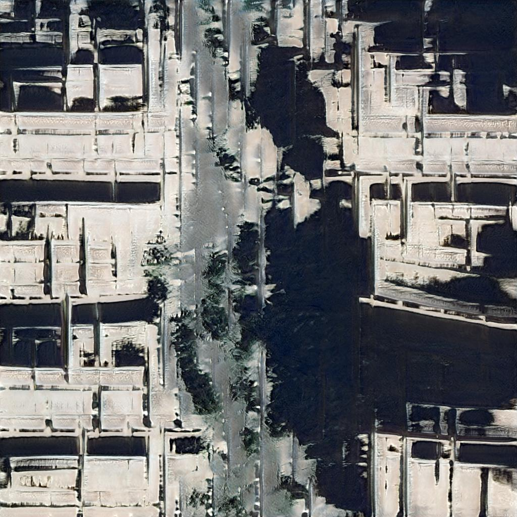 My project should do something between these two standpoints. Based on models, trained in RunwayML, nonexistent cityscapes where created. They are showing various points of view of cities at various daytimes. Based on such models, I designed a fictive tool for architects and city planners, which should be able to generate new ideas and designs for urban planning. Based on geodata and the pre-learned things about the problems I discussed before, the tool would be able to create a new idea for a city of the future. With such control, a human operating the tool could adjust the inputs in a way, so that the machine could generate the perfect fit for the very space that the city should be built upon.