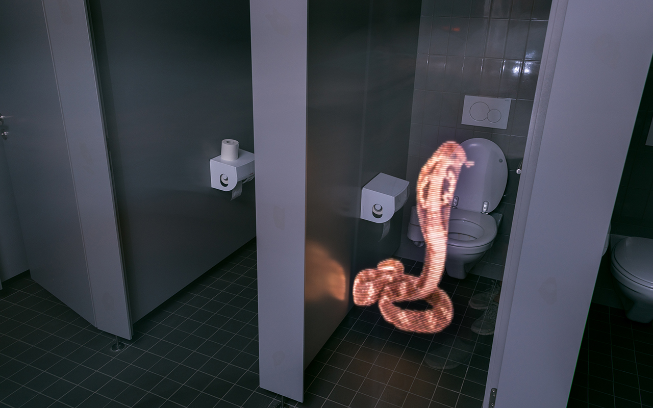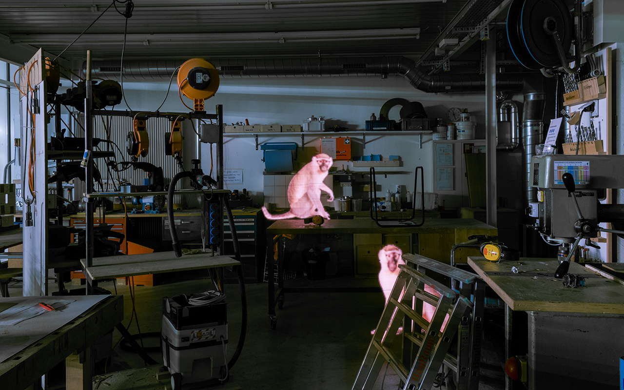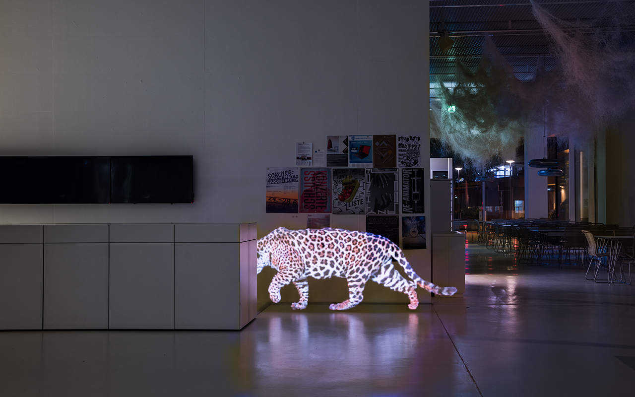 Our experimental work ironically points to students working late night at the HGK, but we also found it interesting to place creatures where they obviously do not belong. Next to the photographs we show quotes, which emphasise our thoughts. We used a LED „pixel stick“ to create the animal pictures. The longer you look at them, the more real it becomes!