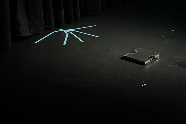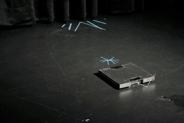 «Animals In Progress» is a graphical visualization of a few selected animals in motion. The source material were original videos of insects and worms that were processed in Adobe AfterEffects in order to obtain the data needed to create various animations, which were then reproduced as vector graphics in Processing. The installation allows for a playful confrontation with these creatures - e.g. earthworms or centipedes - which appear from under a curtain, crawl around and and then leave the scene in the same fashion. I have set myself the task of investigating how much one can reduce the shape of these animals, whether the animal remains recognizable. And if so, if it causes the same reactions as would occur in confrontation with the real animal. Is something like feeling disgust at all possible, although what you see is purely digital and made out of points and lines? The title of the work aims to support on one hand the importance of the specific locomotion of an animal in order to preserve a certain naturalness and on the other hand is an allusion to the term «work in progress», since the installation merely shows an intermediate stage.