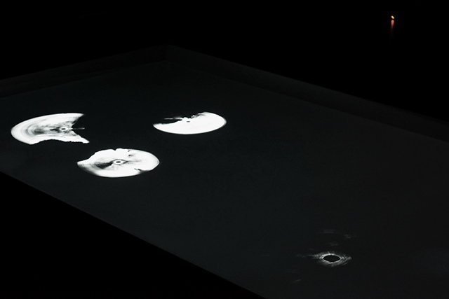 We received the seismic data from the “Incorporated Research Institutions for Seismology” and with the help of a software called “Sonifyer” we were able to produce audible frequencies from the seismographic data. Afterwards, we visualised the different Tsunami soundtracks with a modified version of an existing processing script: openprocessing.org/sketch/6598. The idea was to create an audio reactive script where one could see the epi centres of the Tsunamis, how the audio waves and the tsunami might have reacted to the shorelines of the map and boundaries of our frame (i.e. the exhibition sculpture). For our exhibition we broke out from our extremely clinical view of the data we were using, and decided to apply some artistic freedom to create an experimental piece of music with the sounds that we had produced.