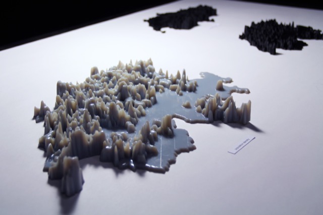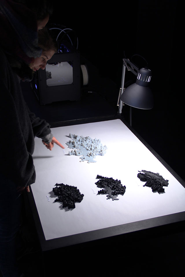 The decision to use population density data as starting point came naturally by the ever-lasting political discussions about Switzerland’s population growth in comparison to the small habitable area. A density model has been prepared, rendered and printed out, as well a tourism and elevation models for better comparison. Therefore, by exploring data within a three dimensional space, questions such as «Where do people live?», «Where are some lesser dense spots?» or «Where do tourists go?» can be easily answered and comprehended.